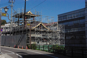 夏から飯坂温泉駅の改装工事をおこなっていますが、屋根を銅版ぶきになりましたので