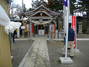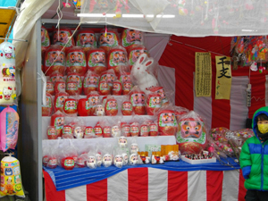 左の写真は高畑天満宮です↓。右は、だるまの出店です↓。