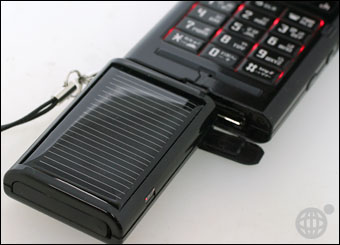 ソーラー携帯充電器を差し込むだけで携帯電話の充電が完了!